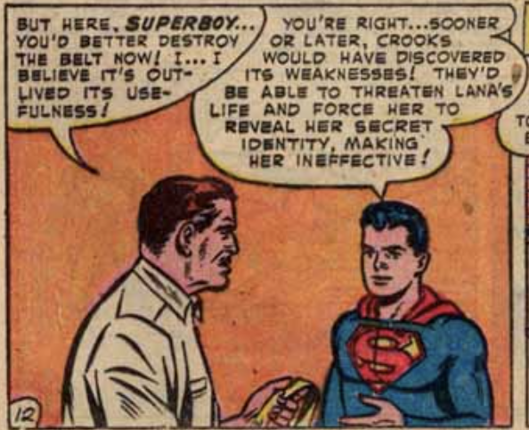 Sky Girl actually does a pretty good job of using her powers for good and keeping her identity secret. But that’s not good enough for Clark, who eventually discovers that Sky Girl is Lana and puts her back in her place as a meek side-chick. Her father agrees that the belt has “outlived its usefulness”.