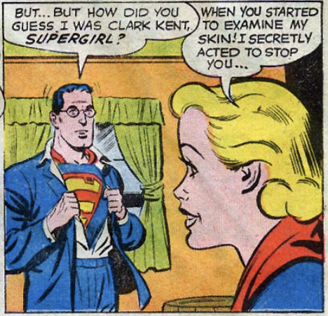 After a week of tearful exile, she receives a note from Superman saying a cloud of kryptonite dust is passing over and she can return to the Midvale orphanage for one day. Making herself up as if she had been lost in the woods, Linda Lee returns and answers reporters questions. But one reporter, Clark Kent, drills her further. She reveals herself as Supergirl to him and Clark/Superman is crushed that Supergirl failed his “test”. However it turns out that Supergirl had already figured out that Superman was Clark Kent.