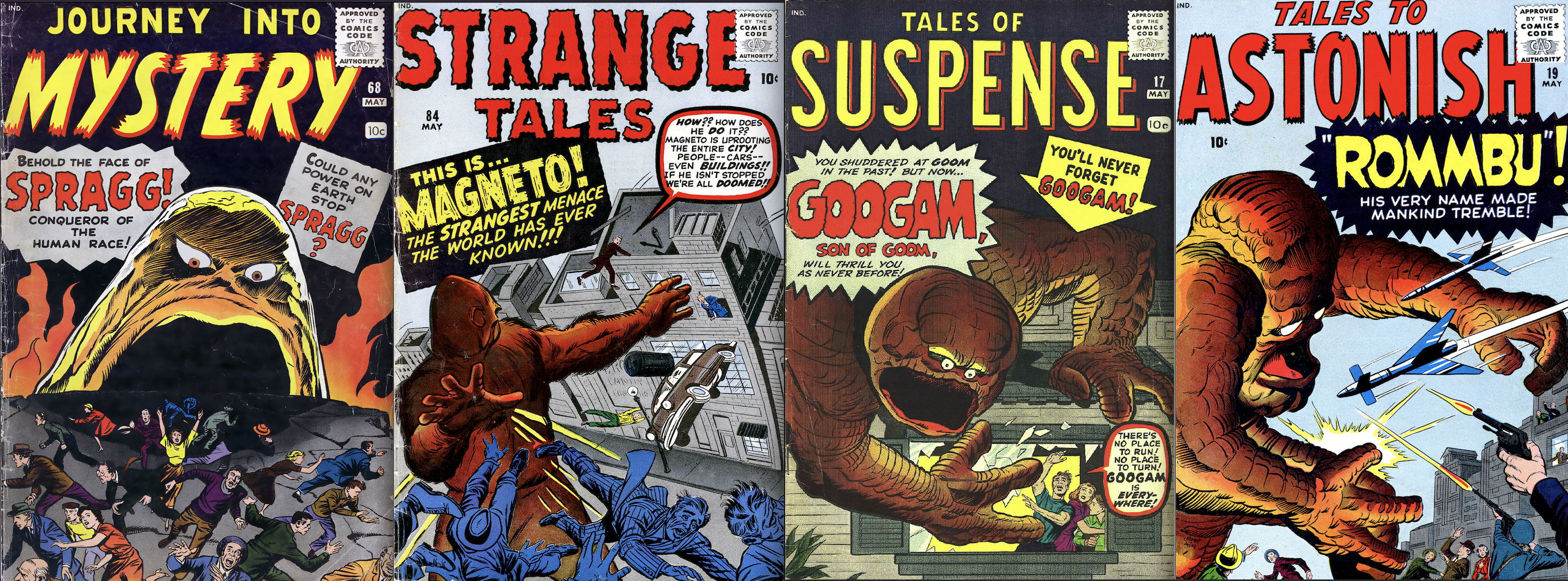 Those wacky Atlas / Marvel comics are still covered in giant monsters in February 1961. This volley includes Spragg, Googam (Son of Goom), Rommbu, and… Magneto. No, not that Magneto.